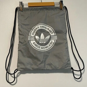 Title: Adidas Originals Gray Drawstring Backpack with Side Zipper Pocket - OG Polyester - Unisex One Size