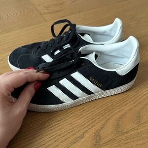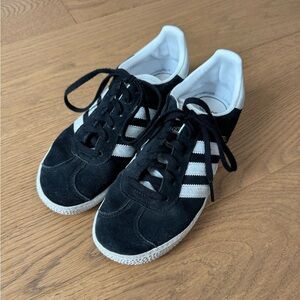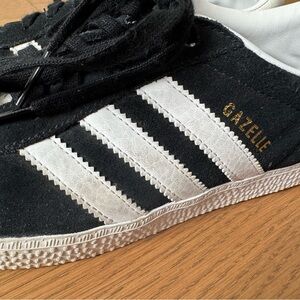 Adidas Originals Juniors Gazelle - Black Suede/White Leather/Gold - Size 3 - EUC
