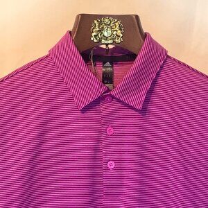Adidas Otman Pencil Strip Pink/Black Polo Shirt Golf Men NWT