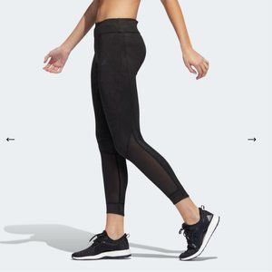 • The fitted tights have strategically placed mesh panels for ventilation and cooling.