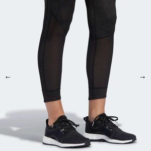 • The fitted tights have strategically placed mesh panels for ventilation and cooling.