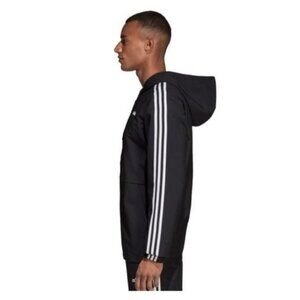 Slip on sport-inspired style before and after training sessions. This windbreaker features the iconic 3-Stripes down the shoulders and sleeves for an authentic look. The woven jacket is made of recycled polyester.