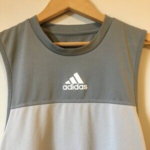 Very good preowned condition, performance fit, Aeroready dark grey and pale grey muscle tank by Adidas. Ideal comfort for any type of workout and a nice neutral colour palette.