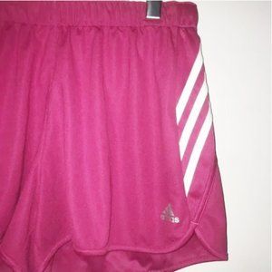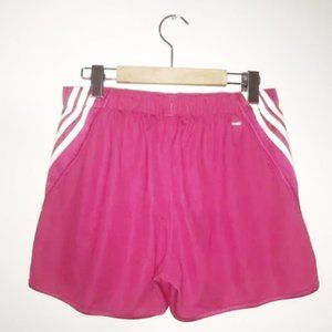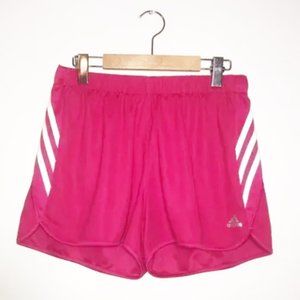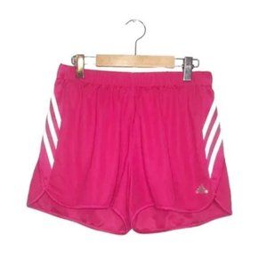 Adidas pink and white Climalite athletic shorts with a drawstring adjustable waistline.