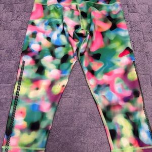 Experience vibrant style and comfort with these Adidas ankle-length leggings, featuring a dynamic blend of pink and green hues. Designed with a supportive waistband and crafted from stretchy material, these leggings are perfect for yoga or fitness routines. The abstract pattern adds a lively touch to your activewear collection.