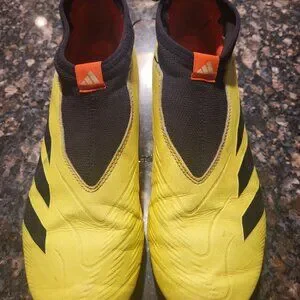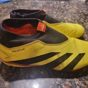 Laceless Predator cleats. We love these and have moved to the next size up. Bought brand new, worn one season before my son outgrew them. Size 5.5 Youth (big kid)