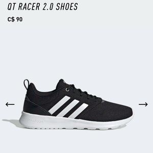 Selling nearly new Adidas black and white QT Racer 2.0 shoes. Only worn a few times. $100 inc. tax new.