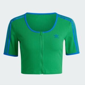 Adidas Ribbed Cropped 3/4 Sleeve Zip Up