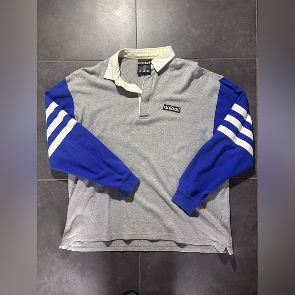 Adidas Rugby Style Polo, loving the style on this piece, with great fit for a large. Definitely a boxy look, big fashion piece for an adidas lover. Slight discolouration on the inside of the collar, but besides that, it is immaculate.