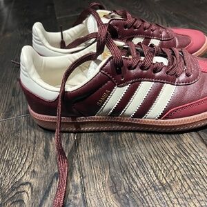 Worn once Adidas Samba maroon/burgundy and cream colour way with natural gum sole.