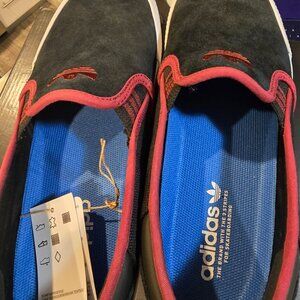 These adidas Shmoofoil Shoes combine two of Mark Gonzales' favorite adidas trainers to create a classic slip-on style built for skateboarding. With Shmoofoil graphics designed by The Gonz, they offer a premium suede upper, grippy Vulcanized outsole and molded sockliner designed for comfort and out-of-the-box performance.