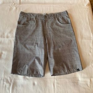 Details:  These shorts are perfect for golf or everyday activity.  They are a quick dry material and look very flattering on.  The first seven pictures truly depict the colour.  They are not purple but grey.  Length is 20.5 - 21" from top of waist band down.