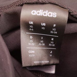 Adidas Size XS Women's Track Pants - Gently Used. The track pants are black with white stripes on the side an Adidas logo on the front. At the waist there is a drawstring with two front pockets. The measurement at the waist is 13.5 inches and the inseam is 25 inches. If you have any questions, message me. I'll be glad to get back to you.