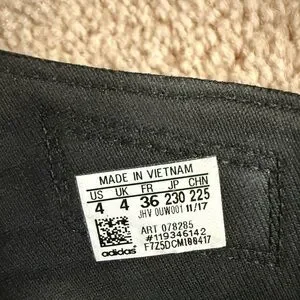 Adidas label with size details.
