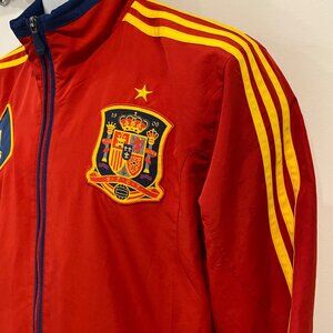 Item keywords: Spain soccer jacket, Adidas track jacket, Spain National Team, La Roja jacket, retro football warm-up, vintage Adidas jacket, World Cup Spain jacket, Euro 2008 Spain, red track top, collector sportswear, unisex soccer jacket, casual retro jacket, fan apparel, football streetwear, training jacket, authentic Adidas Spain