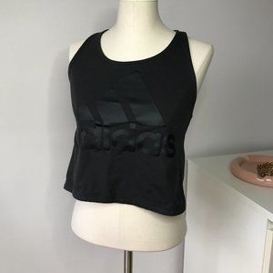 Never worn. Slim fit in soft cotton, this adidas tank top is accented with a puffy logo for a fresh look. A racerback enhances mobility, while an elongated hem at the back adds coverage to the cropped silhouette.