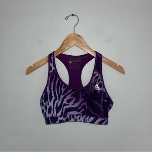 Adidas Sports Bra Women’s Size Small Purple Black Animal Print Racerback TechFit