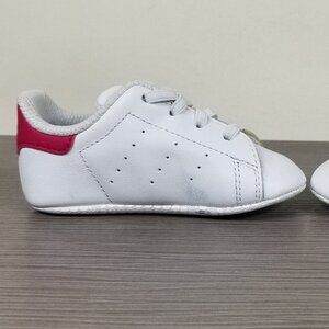 Adidas Stan Smith Crib Sneakers, White-White-Bold Pink s82618, Size 3K / 19