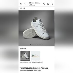 **please note this is the leather version retail $180 which is most often excluded from promotion with Adidas *** stock images are for comparison purposes only and show both versions of the sneaker leather and the non leather version (retails at $135)***