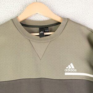 Adidas Sweatshirt Mens Large Green Striped Heavyweight Crew Sweater Athletic