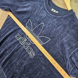 Adidas Sweatshirt Men's Size 1X Blue Velour Pullover Sweater Trefoil Embroidered