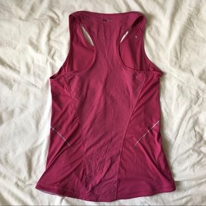 Slim fit racerback tank top with zippered media pocket and earphone hole. Pinkish-purple colour (closer to pink, first picture is most accurate).