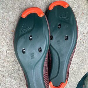 A new pair of Adidas “The Road Shoe” Cycling Shoes with tags attached but without a box. The color pattern is Impact Orange/ Ecru Tint/ Shadow Green. Model GY6810. These are unisex shoes. Size is Men’s 6.5 - Women’s 7.5