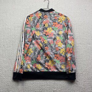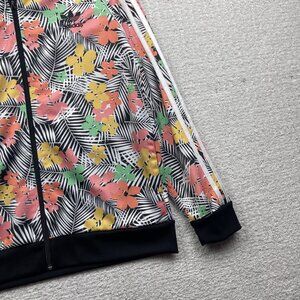 Adidas Track Jacket Girl's Sz L Tropical Floral Palm tree AOP Zip Up Running