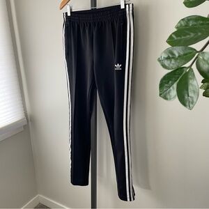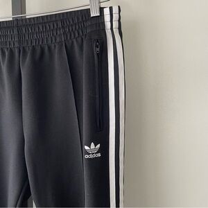 Adidas Track Pants 3 Stripe Zippered Hem & Pockets Pull On Black White Womens