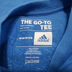 Cheer on the team in style with this Adidas UCLA T-Shirt, featuring a vibrant Cheerleader Design. The Go-To Tee is perfect for your young fan, sized 5-6, and brand new with tags, making it a must-have addition to their wardrobe.