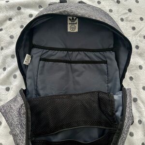 Modern Adidas backpack with a heathered design. Features multiple compartments for organization. Fits laptop, books, and daily essentials. Comfortable adjustable straps.