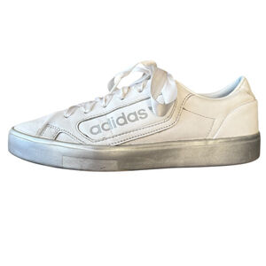 Adidas White Silver Sleek Leather Sneakers Trainer Shoes Satin Laces Size 7.5