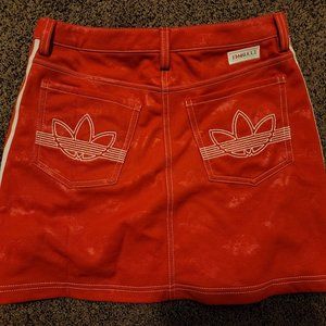 Adidas Women Originals x Fiorucci Jacquard Trefoil Red Mini Skirt 3 Stripes (S)