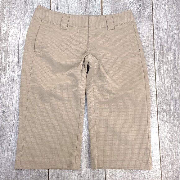 Adidas Womens 3 Stripe Golf Shorts Size 2 Beige ClimaLite Performance Capri