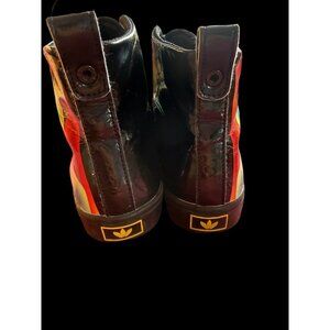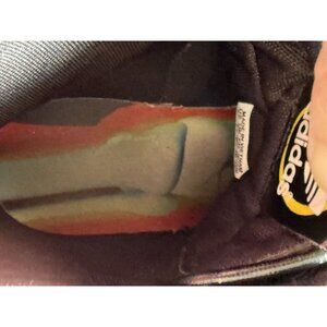 Very cool Adidas sneakers! Normal wear and creasing. Colors are still vibrant and shoes are sturdy.