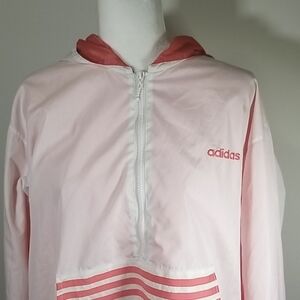Loose fitting hooded jacket with front pouch pocket. Fits bigger than a large.