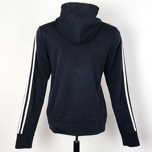 Adidas Women's Navy White Full Zip Hoodie 3 Stripes Pockets Size Medium