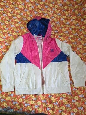 Stay stylish and comfortable with the Adidas Women's White Jacket. This jacket has a fleece lining. Perfect for any casual outing. It's like a new condition. No stain. Just remove the tag and use it once.