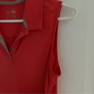Elevate your style with this Adidas sleeveless polo top. Perfect for casual outings or sports, this pink top offers comfort and a sleek look.
