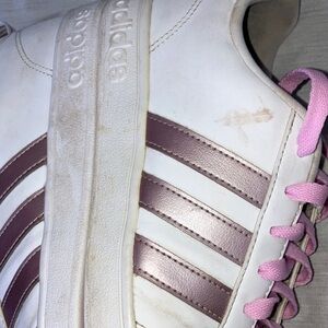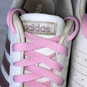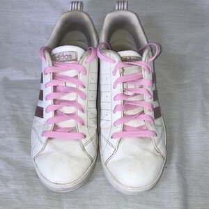 Adidas Women's size 8 White Sneakers with shimmery Pink Stripes