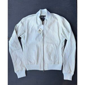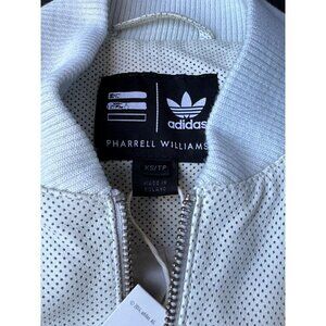 Adidas X Ferrell Williams Light Grey Perforated Leather Bomber Jacket XS.