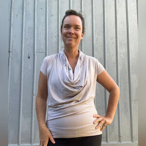 Super soft modal and cotton blend Stella McCartney x Adidas tee. Beautiful drapey cowl neck feature. Exceptionally stylish athletic gear!