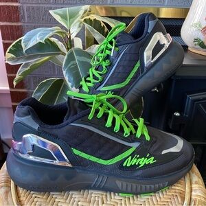 Limited run Adidas x Kawasaki sneakers. Black, bright green, and silver. Only worn a couple times. Size 10.5.