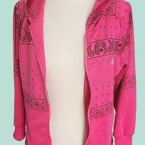 Adidas, Zip, Hoodie, Pockets, Pink & Black Paisley Pattern, XL, Age 14-16, Track