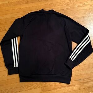 Adidas active wear jacket. Zip front with logo pull. Adidas embroidered logo on left chest. Raglan sleeves. Sz 13-14Y. GUC. 100% Polyester.