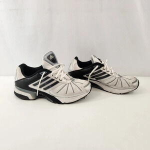 Adidas men's running shoes. Fabric has some very minor discoloration but is overall in good condition with very little wear. US size 9