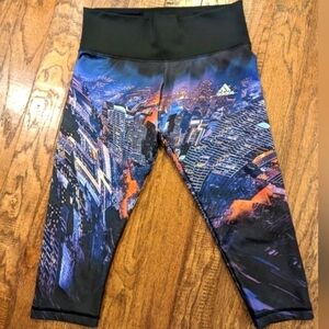 Adidas athletic techfit crop pants woman's Sz S cityscape