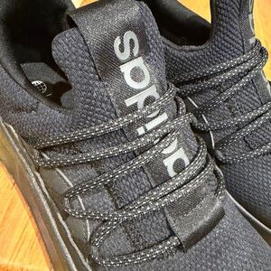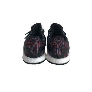Adorable ultraboost sneakers in a gorgeous knit with a black, red, blue and orange colour combination. Never worn. Excellent condition with box. SFPF Home.