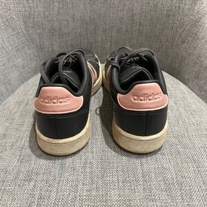 Adidas grand court low tops, gray leather with pink accents size 6.5, cloud foam sole.