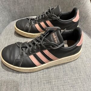 Adidas granc court low tops, gray leather with pink accents size 6.5